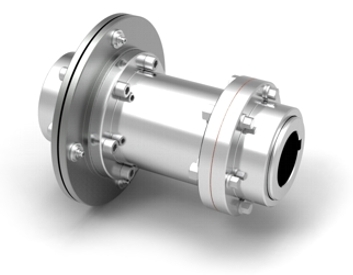 Acoplamento de engrenagem especial, possui espaçador para aplicações onde as distâncias estre os eixos é relativamente grande, além de um dispositivo de segurança com pinos cizalhantes para não ultrapassar um limite de torque pré determinado, protegendo equipamentos contra sobrecargas.